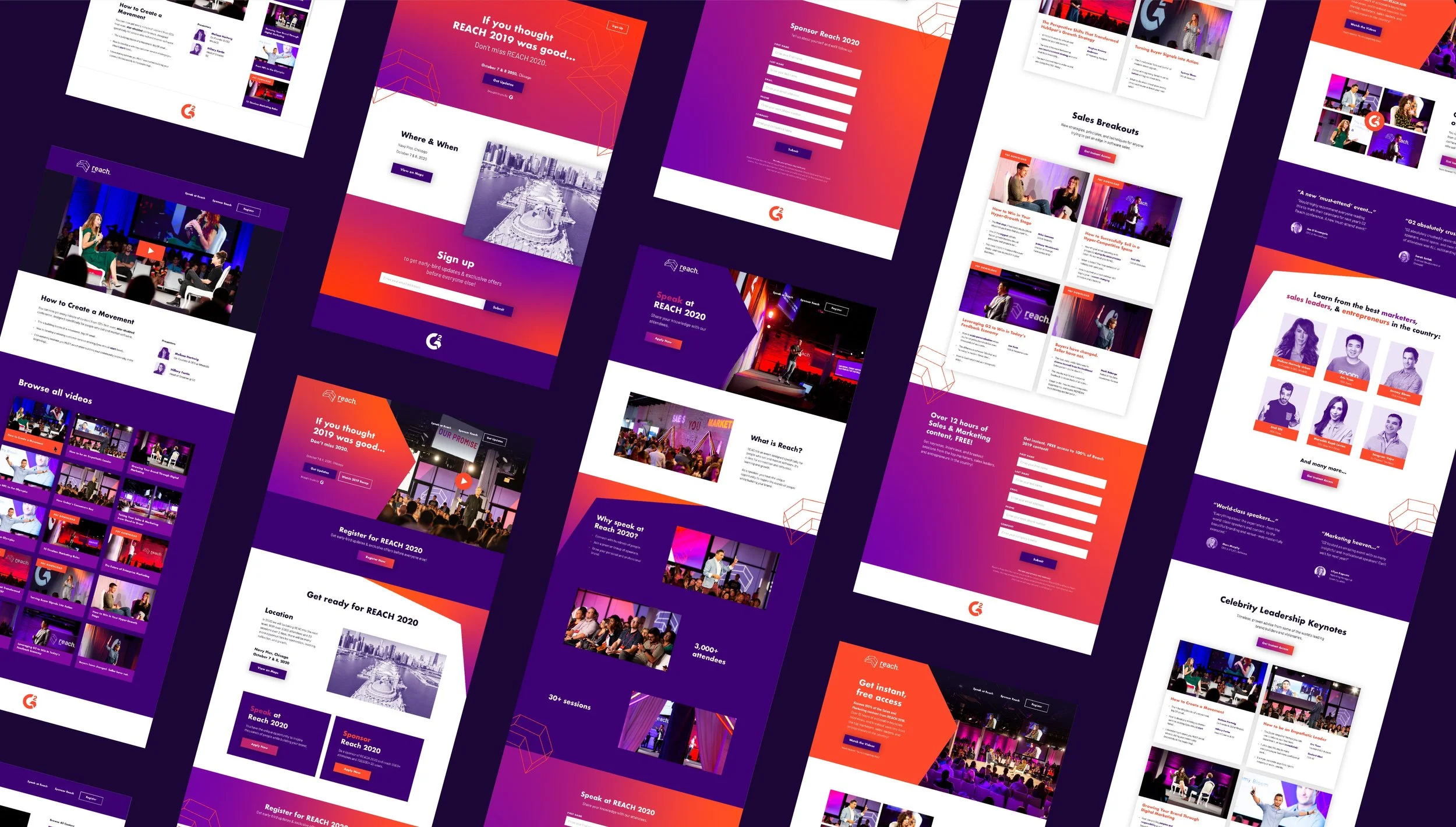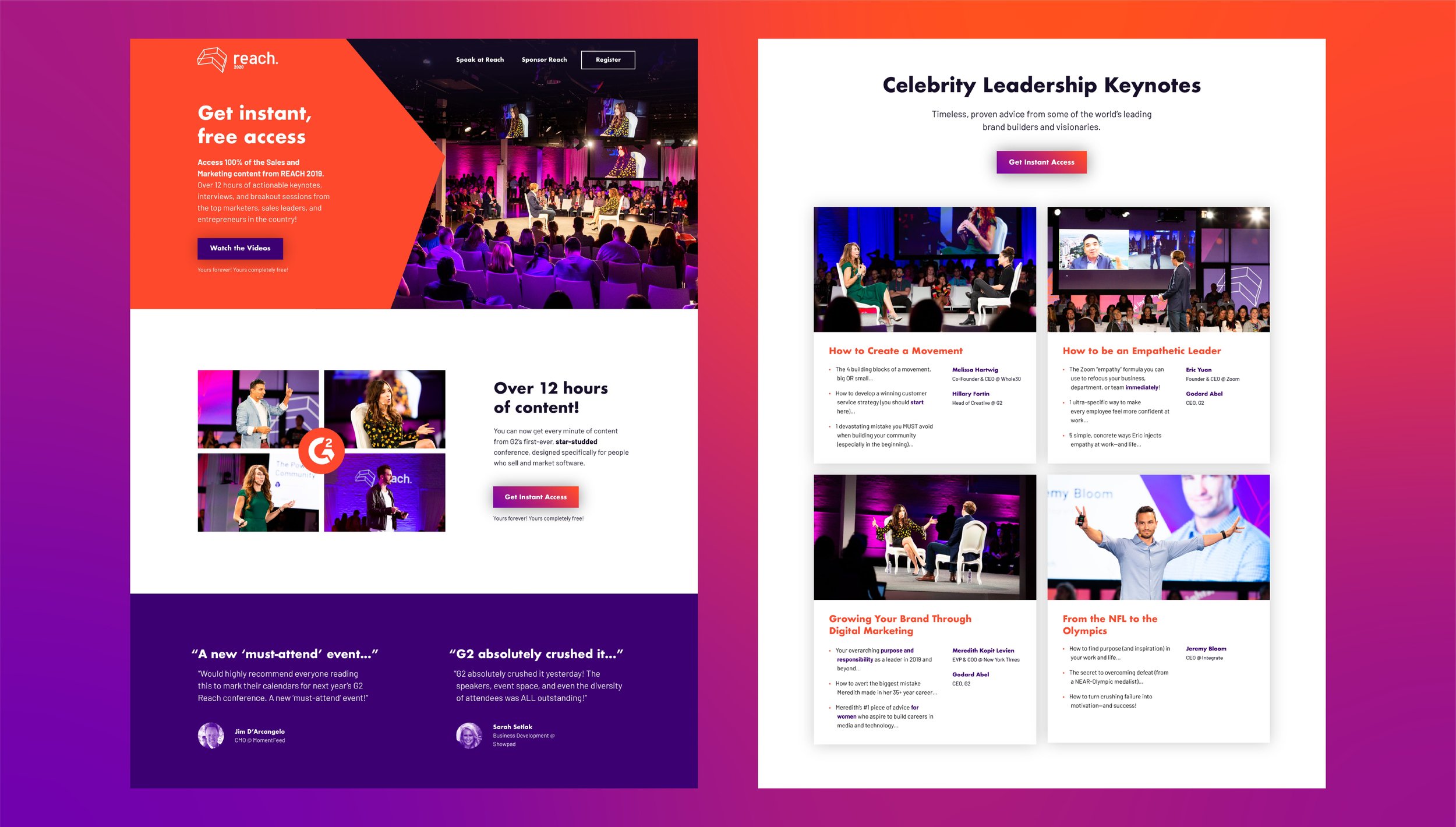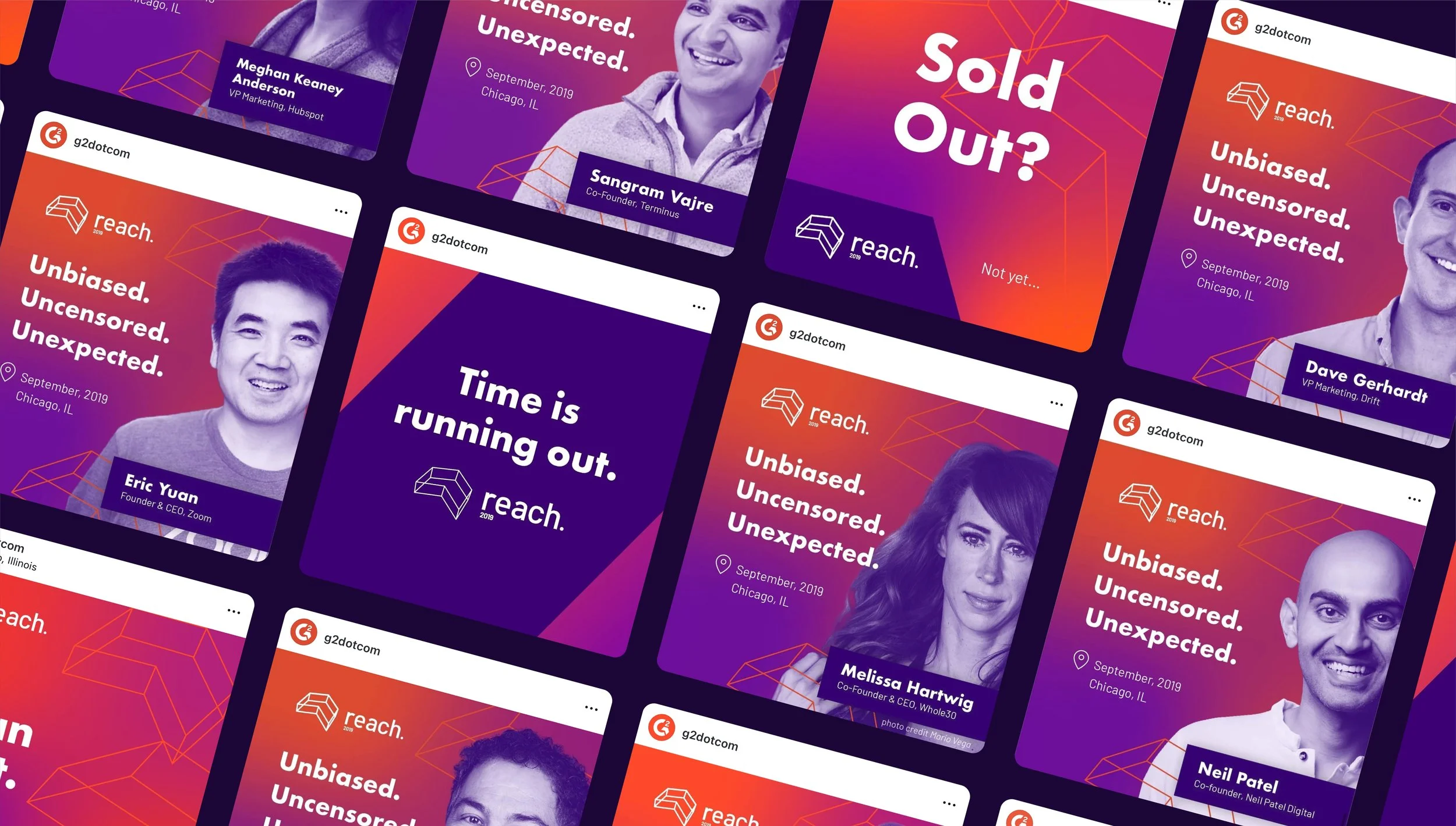 Before any attendees could arrive at Reach, significant work went into crafting the Reach brand and building out the event’s digital footprint. I worked with the G2 Marketing team to design a pre-event digital experience as well as a post event online video hub. I also created a host of digital ads, social assets, and emails to promote the event and speakers.